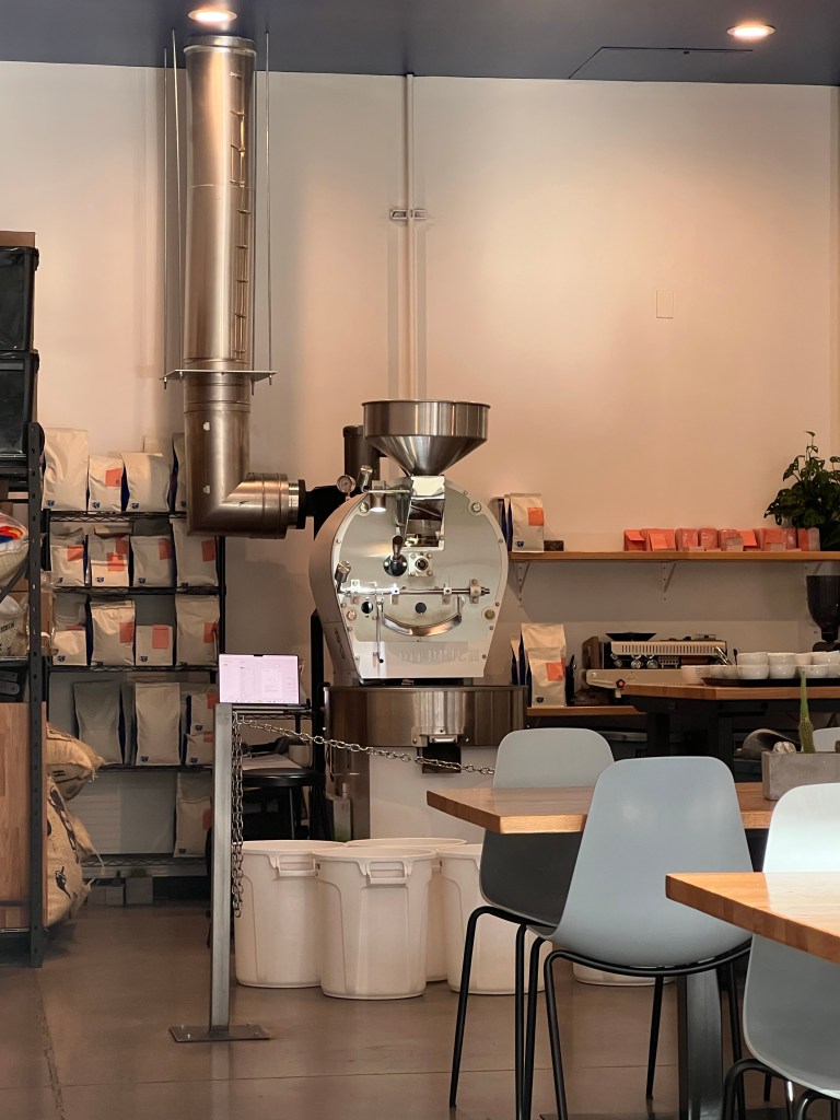 And there’s a cherry on top! The roaster – right there in the room. You gotta love that – the full circle of coffee creation, from bean to cup, all happening right in front of your eyes. Equipment-wise, they’ve gone top shelf – no skimping on quality here.